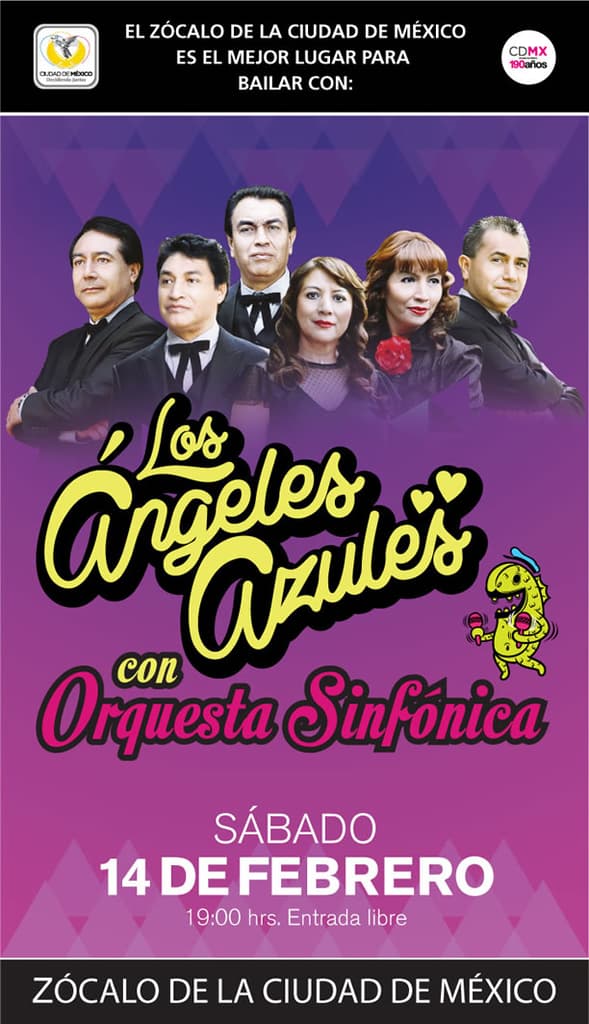 ¡A bailar se ha dicho! El Gobierno del Distrito Federal invita al megabailongo en el Zócalo este 14 de febrero, con la presentación gratuita de Los Ángeles Azules acompañados de la Orquesta Sinfónica.