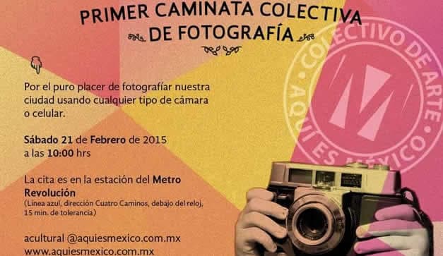 Este sábado 21 de febrero, el Colectivo de arte Aquí es México convoca a reunirse en el Metro Revolución (dirección Cuatro Caminos, bajo el reloj) para partir rumbo a un recorrido por la ciudad llamado “Primera caminata colectiva de fotografía”….