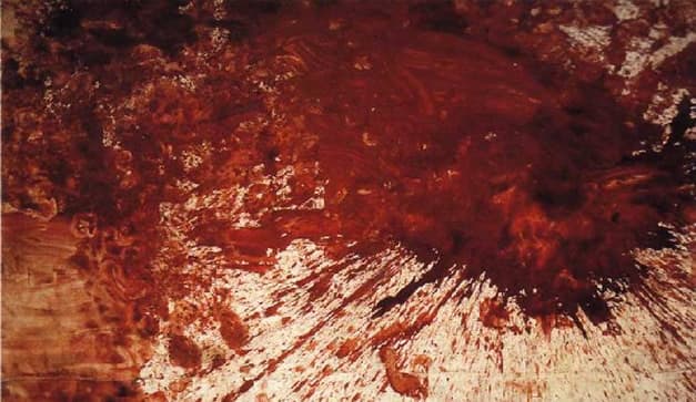 Lo que ves en la imagen que ilustra esta nota en un principio te parecerá un montón de pintura como base de una obra de arte. En realidad es sangre animal. Ésa es la principal polémica que la exposición del…