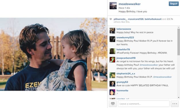 Meadow Walker, la hija de Paul Walker, publicó ayer una foto en su cuenta de Instagram para felicitar al fallecido actor por su cumpleaños 41. La emotiva imagen muestra a un Paul muy joven, con su hija en brazos…