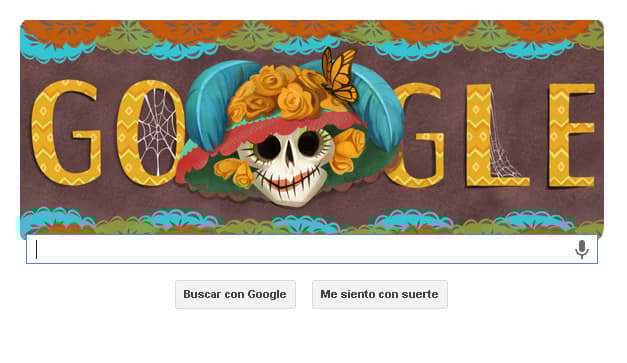 Así se ve la página de inicio de Google, que diseñó un Doodle más para festejar el Día de Muertos.