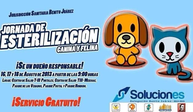 Si tienes un perro o un gato y quieres que sea estirilizado, lánzate a los diferentes puntos de la delegación Benito Juárez, en donde puedes llevar a tu mascota para la que le hagan el procedimiento de forma gratuita….