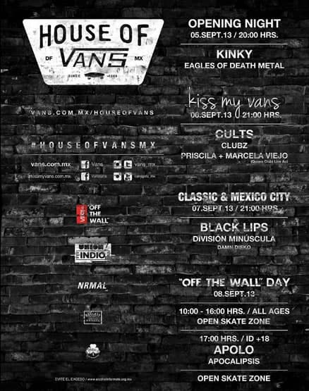Es un hecho, Black Lips, Eagles of Death Metal y Cults estarán en el DF como parte del cartel de House of Vans, del 5 al 8 de septiembre. La marca de calzado anunció que el evento será en el…