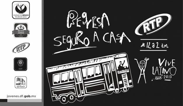 El Instituto de la Juventud del Distrito Federal, planeó una estrategia de servicio gratuito de RTP a los asistentes al Vive Latino 2013, para facilitarles el regreso a sus casas los tres días que dura el festival (tres jornadas…