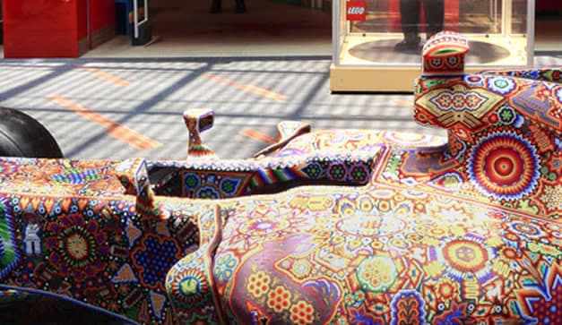 El Fórmula Arts Gallery: Huchol Car es un auto en tamaño real de Fórmula 1 que se exhibirá en la explanada del centro comercial Antara. La juguetería Hamleys México trae este ejemplar intervenido por 16 artesanos huicholes que trabajaron en él…