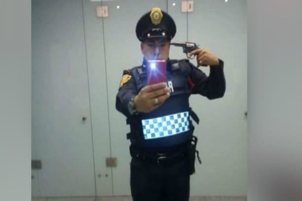 La selfie de este policía de la Secretaría de Seguridad Pública de la CDMX estuvo circulando el redes sociales porque usa su pistola para apuntarse en la cabeza y crear la imagen. El consejo de honor y justicia de…
