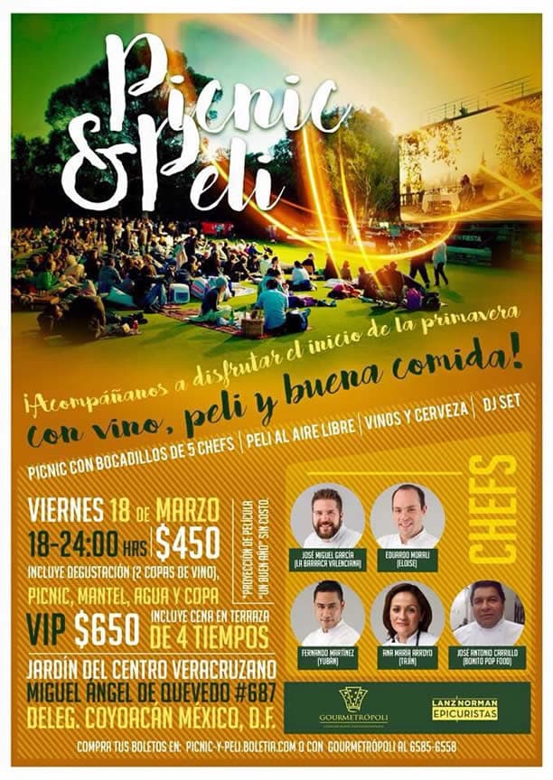 Este viernes 18 de marzo, lánzate al Picnic & Peli que se organiza en Coyoacán. Se trata de un evento al aire libre en el que podrás degustar un menú de 4 tiempos hecho por José Miguel García (Barraca Valenciana),…