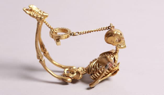 Brazalete de esqueleto Está hecho 100% de latón y para hacerlo estudiaron la anatomía humana, con el fin de reproducir el esqueleto de manera idéntica. Los precios en esta tienda son bastante moderados para ser una joyería de diseño….