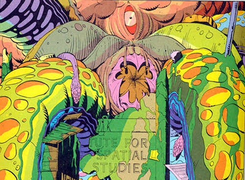 En el cómic, el desastre nucelar se previene gracias a los planes de Ozymandias, conocido también como Adrien Veidt. Veidt crea una especie de calamar-monstruo con tentáculos para destruir Nueva York, esto aterra a los altos mandos de la Guerra Fría y los convence de detener su disputa y mejor aliarse en lugar de destruirse unos a los otros.
