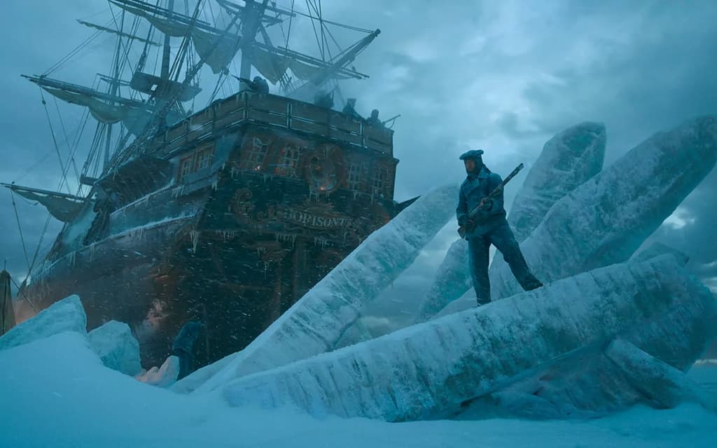 Al inicio observamos un paisaje helado, con un barco varado en medio del hielo, que definitivamente refleja el inicio del libro (que viene siendo el final). En el libro, Víctor le cuenta su historia a un joven científico llamado Walton que busca expandir el conocimiento sobre el Polo Norte, poniéndose en peligro a él y a la tripulación.