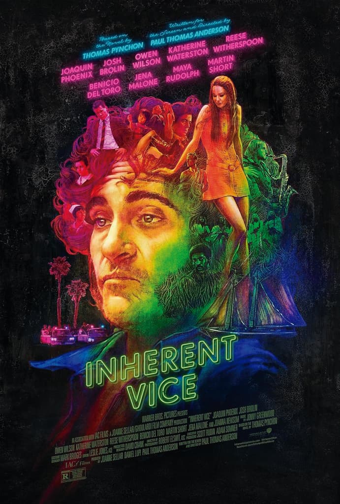 Basada en la novela homónima de Thomas Pynchon, Inherent Vice (2014) sigue a Larry “Doc” Sportello, un detective privado que se la vive fumando marihuana y está en busca del nuevo amante de su exnovia Shasta Fay, quien es un magnate inmobiliario, en Los Ángeles de 1970.