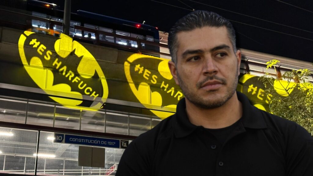 Al estilo de Ciudad Gótica, la CDMX vio como la “batiseñal” iluminaba diversos puntos de la capital del país. Sin embargo, el icónico logo de Batman fue reemplazado por el eslogande campaña #EsHarfuch, quien pertenece a Omar García Harfuch, quien pretende ser el nuevo jefe de Gobierno.