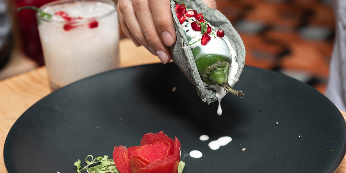 Si tienes un hambre feroz, lánzate a Alebrije por un chile cubierto en crujiente y suave hojaldre, bañado en nogada. De postre, en Konoleta hay una paleta bien buena de nogada con mermelada de granada.