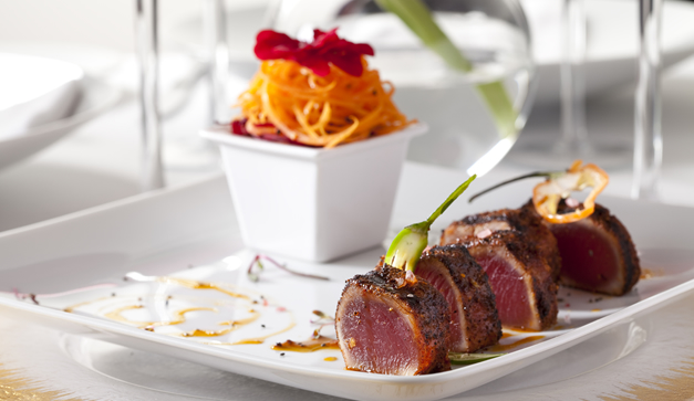 Platillos probados: estrella de atún con serpentina de verduras; cebiche con zapote negro; quesadillas multicolor; consomé verde esmeralda; crema de ejotes con vainilla de Papantla; ramillete de flor de calabaza en crema; carnitas con salsa de pipicha; chocolate de tablilla al fuego; flan de leche de coco con piña; esquimos contemporáneos; pastel de elote.