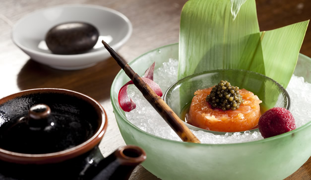 Platillos probados: tartar de salmón con caviar; sashimi de hamachi con jalapeño; ensalada Matsuhisa de atún; bacalao negro con miso; toban yaki de filete importado de res; degustación de sushi con sopa miso (salmón, callo de hacha, anguila de agua dulce); erizo de mar; fondant de chocolate sin harina (bentobox), galleta de ajonjolí y helado de té verde "matcha".