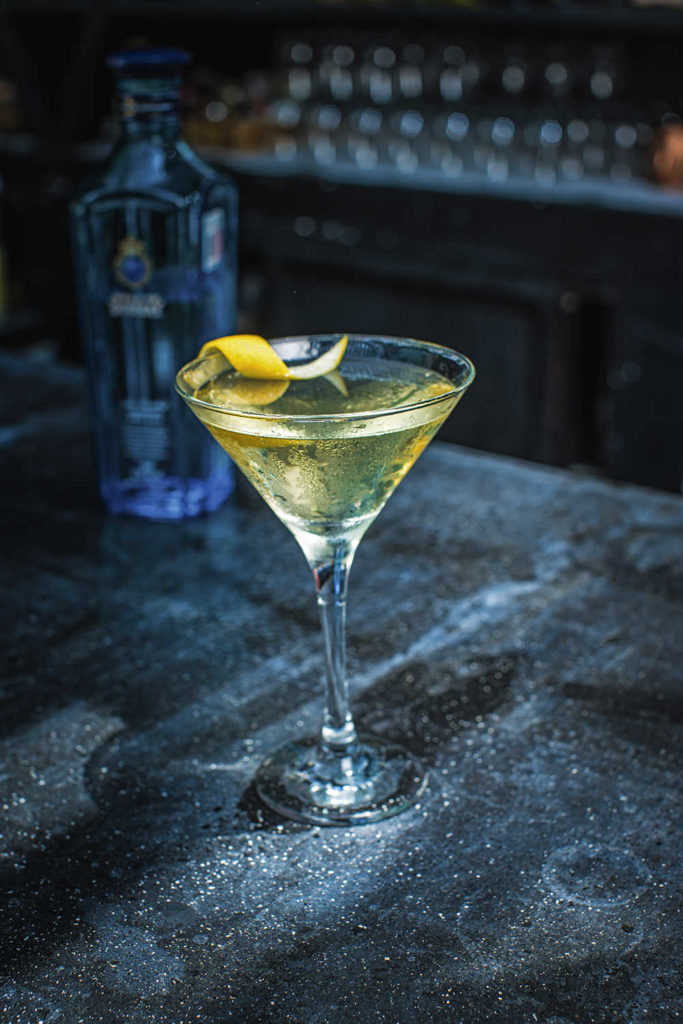 Nos preparó un martini con ginebra, licor de St. Germain, bitter de lavanda y dry vermouth.