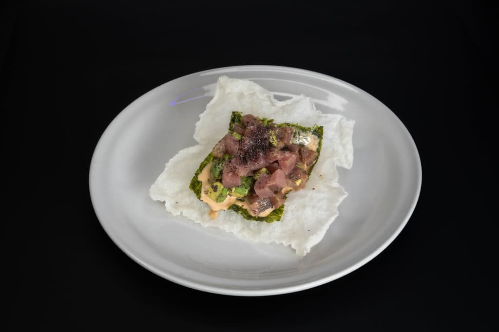 En un bar no se espera que la comida sea algo extraordinario, pero aquí lo es. La inspiración está en una mezcla de comida asiática con mexicana. Tienen siete platos botaneros y un postre, pero vale la pena cada uno de ellos.
