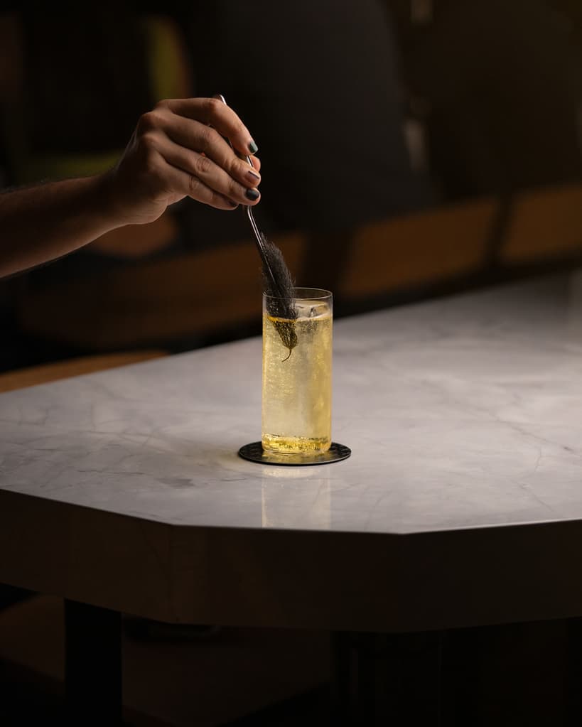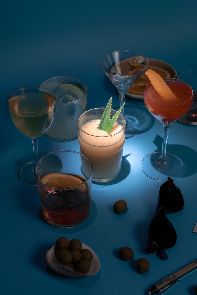 Presentan ocho cocteles pensados para acompañar momentos específicos del viaje: un trago para tomar después de un vuelo largo (Jet Lag, con gin Mare, Italicus, vino chardonnay, Cocchi Americano y cordial de galanga, es refrescante y perfumado), otro para antes de cometer una locura (Última duda, con mezcal, mantequilla y raicilla, licor de café, cacao blanco y cold brew, un trago fuerte, envolvente y con intención) o uno para pedir cuando ya no sabes qué pedir (Plan “B”, que lleva ron, sherbet de lima yucateca y sorbete de piña).