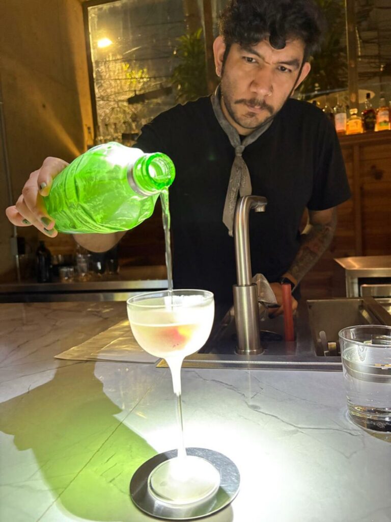En una confesión entre copas —quienes bebíamos éramos los del otro lado de la barra—, el bartender dijo que no bebe alcohol. Justo por eso había hecho tragos que equilibran técnica, frescura y carácter, demostrando que la coctelería sin alcohol puede ser sofisticada y memorable. Prueba La Genjibrada (cerveza de jengibre, pepino, chía y limón) y el Mocktail de Maracuyá (pulpa de fruta y jarabe).