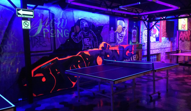 Cuenta con tres mesas de ping pong en las que puedes jugar por pareja y hasta llevar a tus amigos para organizar beer pong y glow pong, los que básicamente consisten en tener buen puntería.