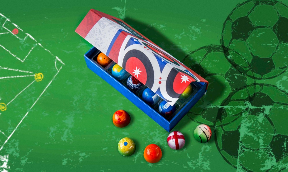 El chef José Ramón Castillo, quien desde el 2012 fue nombrado por SAGARPA como el máximo exponente del cacao mexicano y de la chocolatería mexicana, preparó para esta época de mucho futbol una colección especial de chocolates mundialistas. Elaborados con 50% de cacao, el chef creó 10 bombones inspirados en países participantes en el Mundial, como Brasil, México, Rusia y España, pero también habrá algunos de otros países que no llegaron, pero que extrañaremos en el Mundial, como Italia y Holanda.