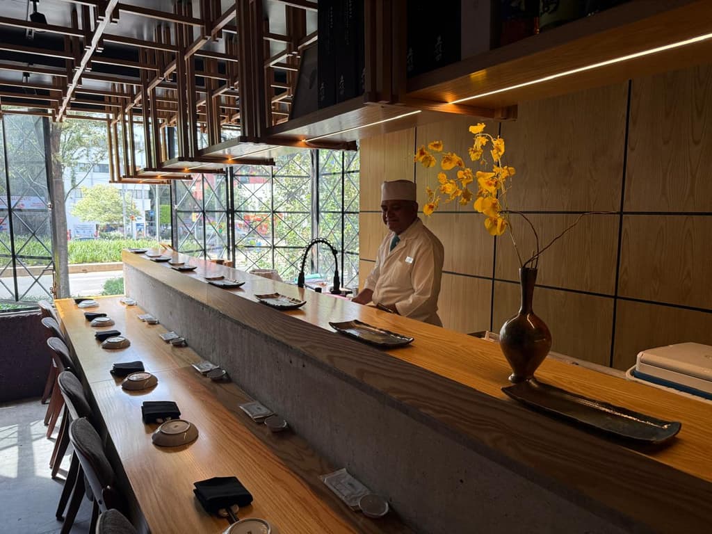 Justo al lado del comedor está la barra de omakase, podrás están en contacto directo con el chef y ver cómo se crea cada bocado.