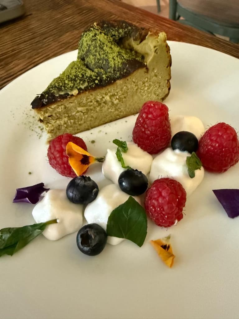 De postre, lo que más nos gustó fue la tarta de marcha es suave y cremosa. Tienen también una de frutos rojos, camelado y mochis.