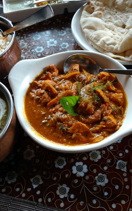 Para entrarle a esta cocina, el chef recomienda el pollo tikka masala, el mattar panner (chícharos con queso en curry) y de postre un gulab jaman (bolitas de leche y queso en miel) acompañado con su respectivo té chai. Pero no debes irte sin probar sus maravillosas lentejas en salsa de curry. Son una especialidad de la casa y te provocarán enamoramiento instantáneo a la primera cucharada.