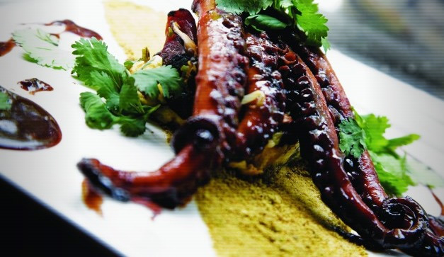 La encargada de la cocina en México es Yerika Muñoz, quién para este tercer aniversario preparó los platillos más exitosos del restaurante. Uno de ellos, el pato en dos tiempos (el primero se sirve confitado, montado en arroz verde a la cerveza negra y perejil con chícharo y pimiento. El segundo es un magret de pato sellado a la plancha, acompañado con un pastel de papa y maracuyá).