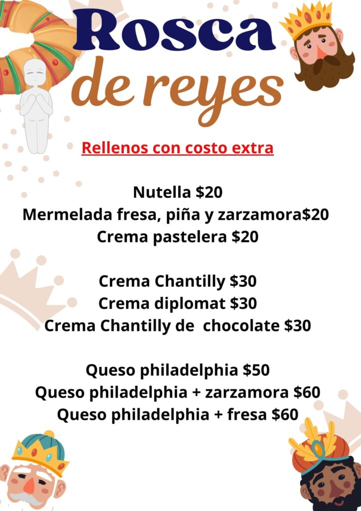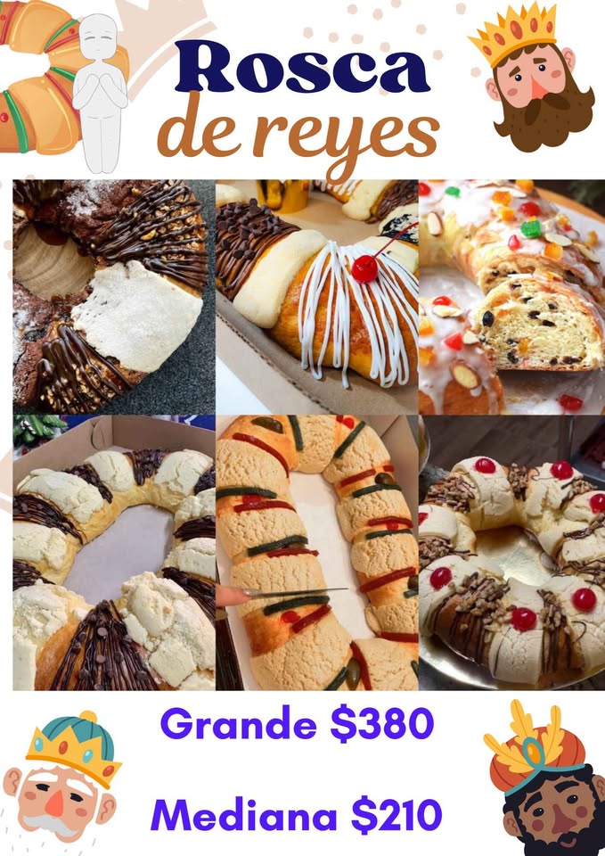 - Todas las roscas incluyen: Juego de candelaria (dinámica para organizar los tamales del 2 de febrero con tres muñecos de colores) y 3 conchitas de los Reyes Magos.