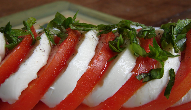 Capresse, queso de buffala, jitomate gigante y albahaca.