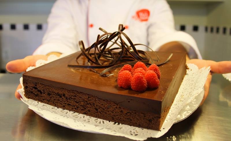 En Sucre i Cacao tienen un pastel Sacher –bizcocho de chocolate relleno de una compota de chabacano y con un ganache de chocolate– un postre clásico austriaco que no tiene comparación.