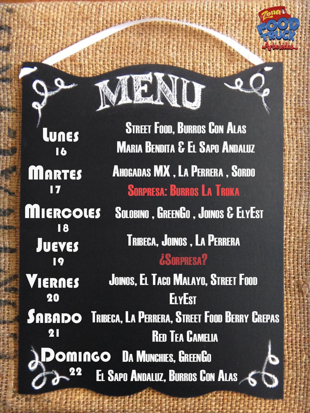 Menú Zona FT Arboledas (Cortesía: Zona FT Arboledas)