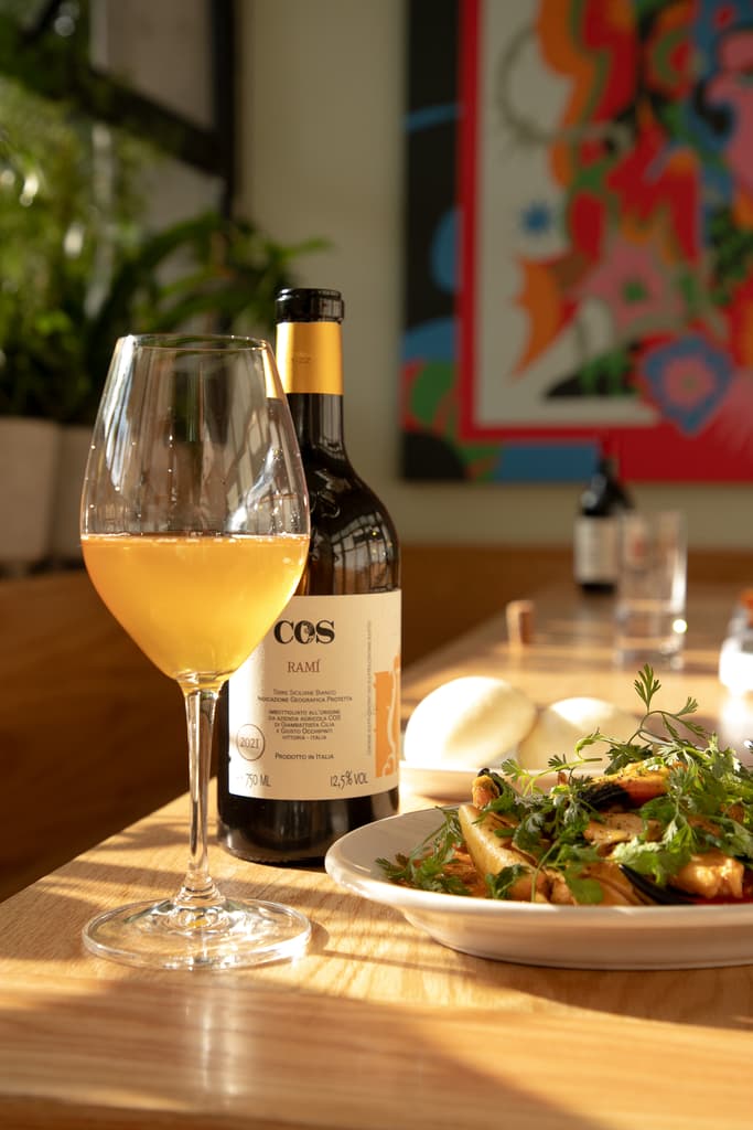 Un vino de Sicilia con aromas a fruta tropical madura, fruta de hueso, un trasfondo de hierbas mediterráneas y almendras. El maridaje ideal es con pastas con berenjena o quesos semicurados de cabra; la salinidad de este vino realza platos de mar como pulpo a la parrilla o mole. En Bar Nino tienen pastas con las que puede ir genial.