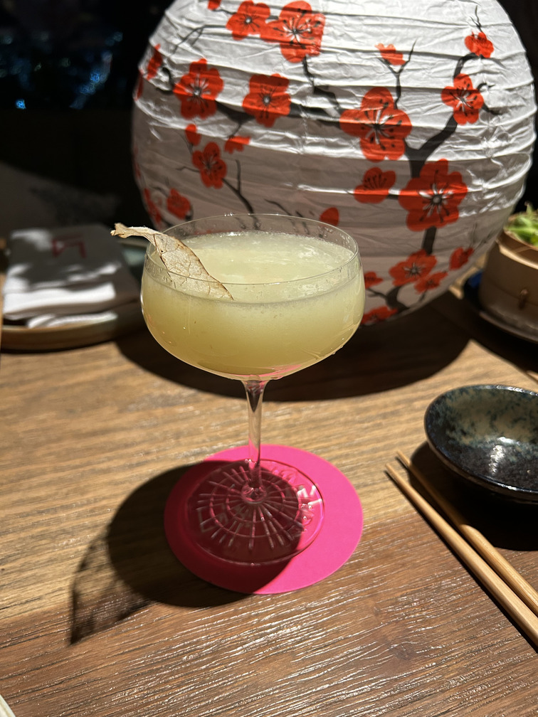 Viaje a Tokyo está preparado con sake Nami Junmai, puré de lichi, pepino y limón prensado en frío, es el más refrescante de todos.