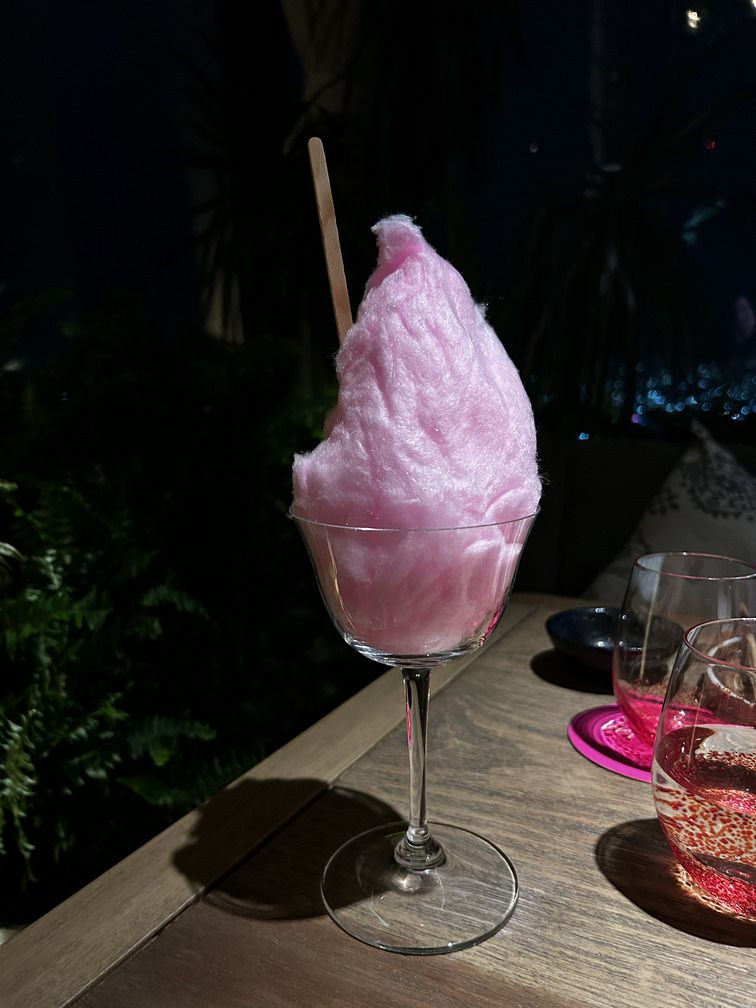 Chapultepinky es un pequeño espectáculo en la mesa. Un preparado de vodka Stolichnaya, St. Germain, jugo de toronja y limón prensado en frío se vierte sobre un algodón de azúcar que al derretirse, se convierte en un coctel rosa.