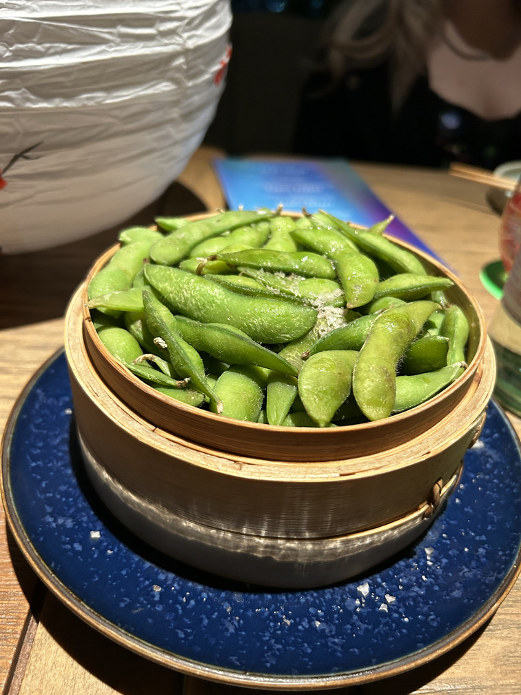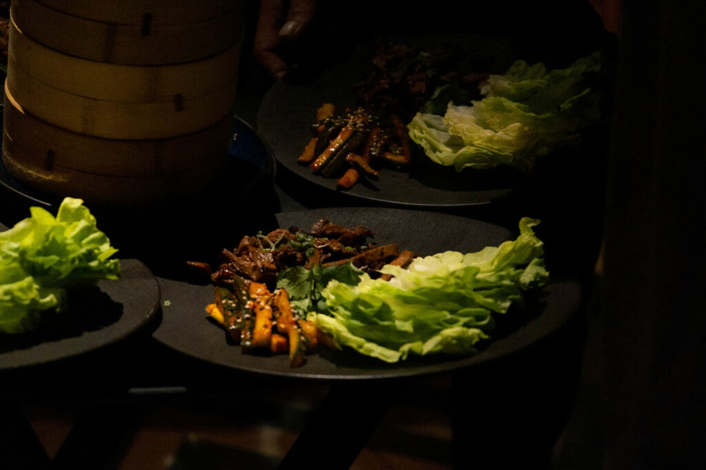 Este menú especial del Año Nuevo Chino 2024 abre con tacos de Lechuga con Short Rib, pepino, cilantro, salsa de chile con ajonjolí. Van también unos Edamames al Vapor con sal ahumada. Dos platos muy ligeros, pero repletos de sabor.