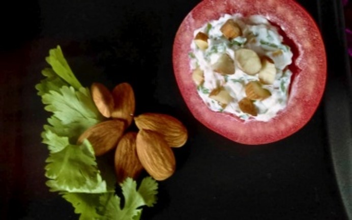 Otra buena recomendación por ser saludable y porque lleva los colores patrios son jitomates rellenos de almendras con queso crema. Mezcla queso crema con almendras rayadas y en medio jitomate (uno por persona) luego de rellenarlos decora con un poco de chile de árbol y cilantro, los dos finamente picados.