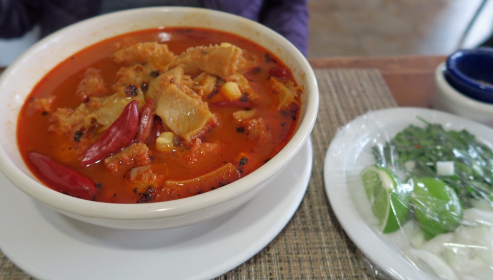 Su origen es incierto. Se cree que viene de herencia española pues es muy parecida a los callos a la madrileña; pero también se dice que se creó durante la época de la revolución, por aquello de la poca disponibilidad de ingredientes que había en esos tiempos. Lo que es cierto es que es un platillo no apto para los que no se arriesgan –por que, aunque sabe rico, su textura es chistosa–; sin embargo no puedes llamarte mexicano si no te has echado este rico caldito después de una noche de fiesta.