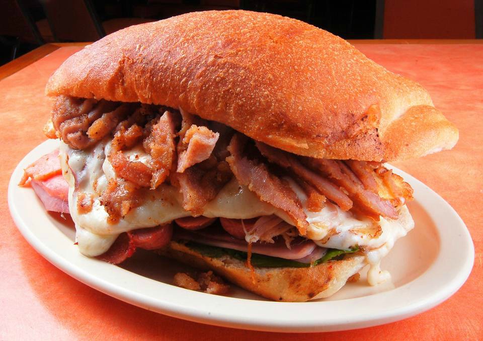 Entre las mejores tortas cubanas en CDMX están, sin lugar a duda, las famosísimas Tortas Gigantes de Sur 12. Este emporio tortero comenzó en la colonia Agrícola Oriental hace más de 38 años con un modesto puesto callejero que solo vendía tortas y jugos. Ahora tienen cuatro sucursales (todas enormes) que están abiertas 24 horas al día. Aunque ofrecen tacos y garnachitas, su especialidad sigue siendo la torta gigante. La cubana es una de las favoritas. Lleva: pierna, jamón, queso blanco, queso amarillo, queso de puerco, milanesa y salchicha. Pero si andas entonado y crees que puedes con más, échate la Especial Sur 12, que tiene: pierna, milanesa, huevo, quesillo, salchicha, jamón, queso amarillo, queso blanco, queso de puerco y chorizo. Ufff, me cansé con solo citar los ingredientes.