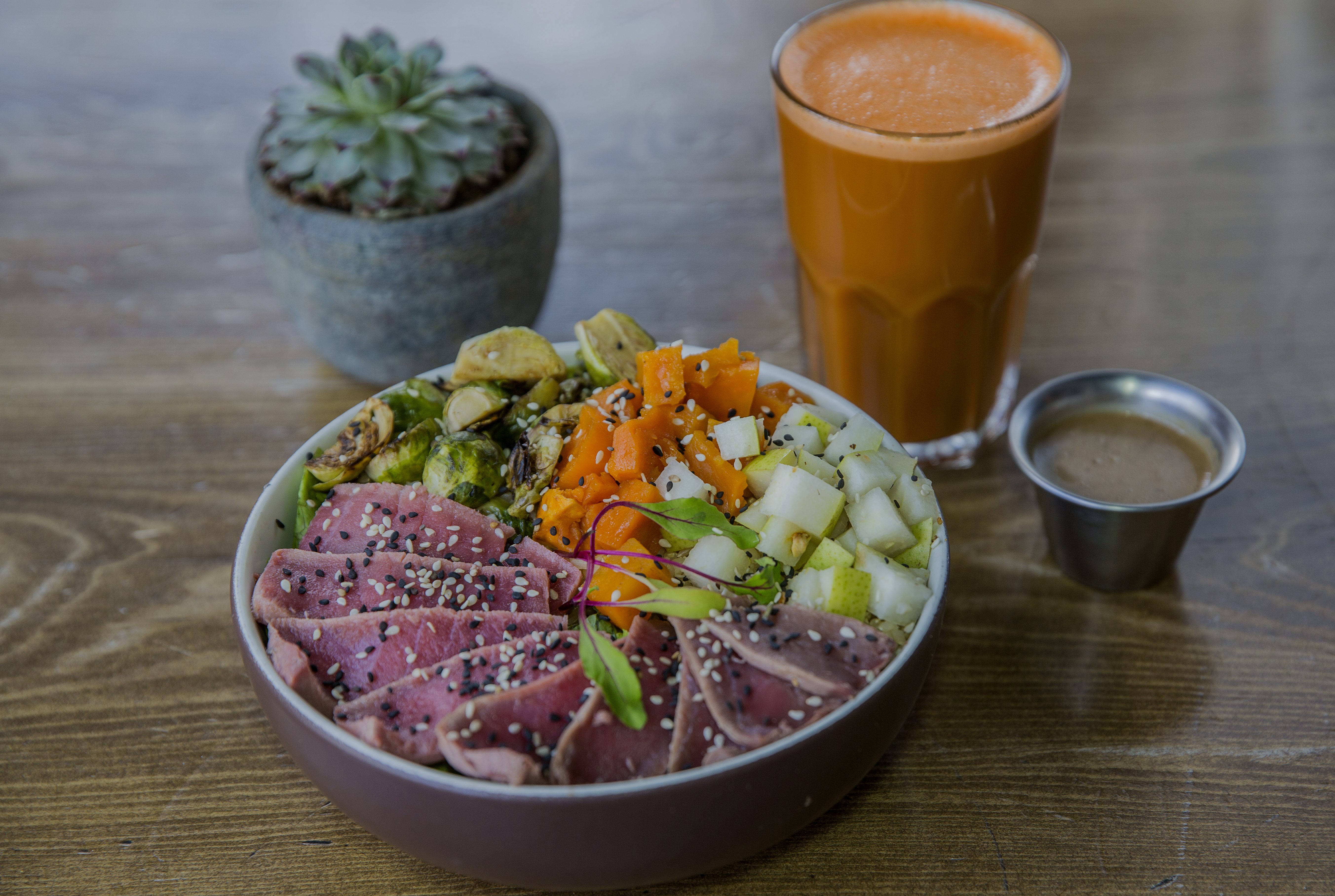*Qué está rico: la especialidad son los bowls, el más rico es el Marley, con lechugas, arroz integral, uva roja, durazno, ejote, camote, queso de cabra, cacahuate, crotones y aderezo de jamaica; ¡es más de medio kilo! También sobresale el toast de aguacate con puré de betabel y las sopas que van cambiando diario para que armes tu menú (bebida, sopa y plato fuerte).