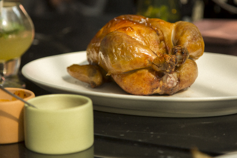 Otros son el pescado zarandeado, con adobo de piña y hierbabuena, y el pollito rostizado con miel de chile mixe, servido con verduritas encurtidas y un puré de papa con quesos mexicanos que vas a querer repetir. A este le va bien la salsa de manzano confitado, ácida y picante.