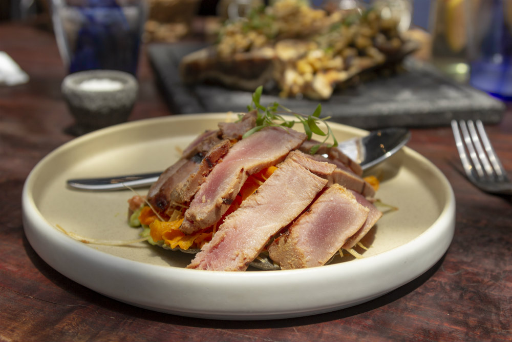 El menú es corto, pero tiene sus joyitas. De las entradas te recomendamos el aguachile negro con habanero tatemado, una verdadera delicia picosita. También los tuétanos con esquites –para que no vayas hasta la Álamos. La diferencia de estos con los callejeros es que están hechos a las brasas y se acompañan con crema de rancho y queso seco. Si quieres algo menos pesado, la tostada de atún, que va sellado al ponzu sobre una tostada de maíz azul con guacamole y aderezo de jitomate con chipotle. ?
