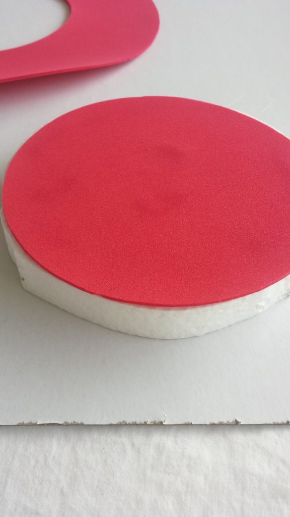 - Marca en el foami rojo dos círculos uno de 31 cm y al centro de este uno de 17 cm aprox.