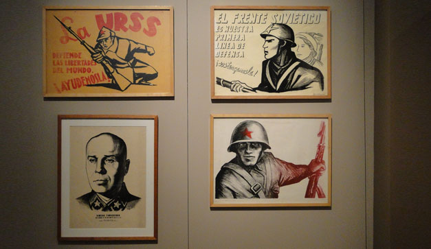 A través de las 274 obras que componen el acervo de esta exposición uno puede sentirse como si se estuviera leyendo una novela de espías de la época de la Segunda Guerra Mundial. Aquí encontrarás fechas y nombres de diferentes personajes que –sin siquiera imaginártelo– participaron. ¿Imaginabas que un soldado de nombre Saturnino Cedillo, quien combatió al lado de Emiliano Zapata, quien se podría decir era de izquierda, se volvió fascista? Y no sólo eso, incluso se le llegó a conocer como el “Hitler con huaraches".