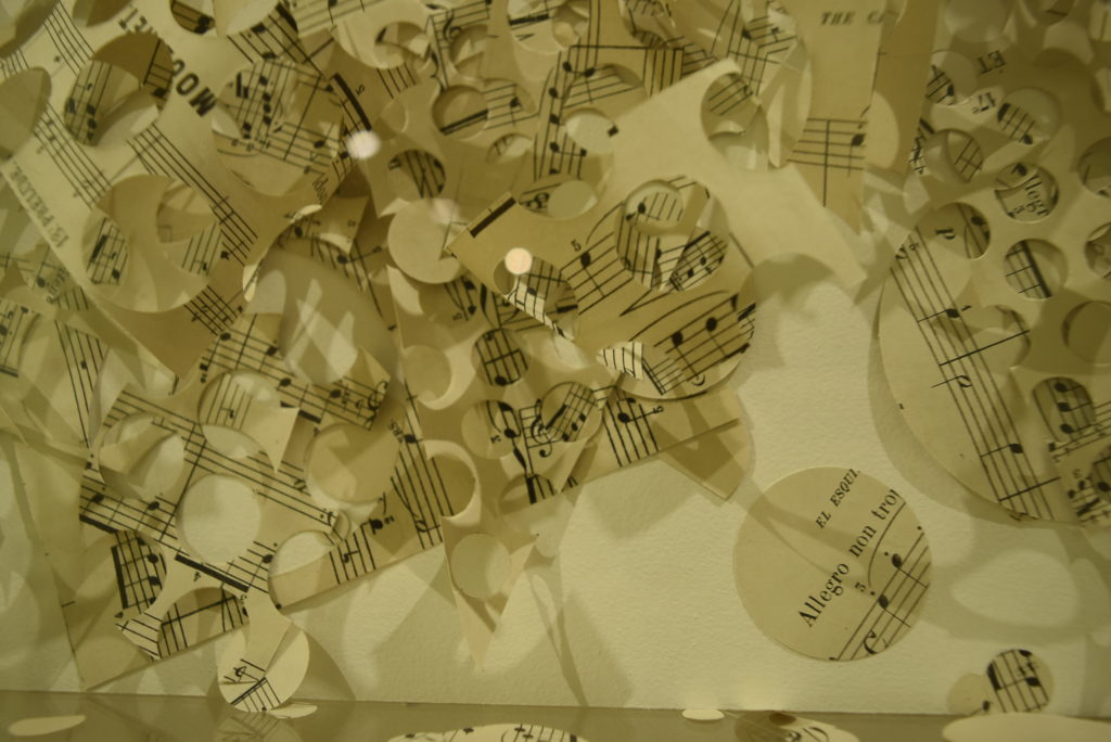 “La idea es que se haga un concierto con distintos objetos sui géneris, si lo reproducimos hay este cruce doble entre lo visual y lo sonoro”, cuenta. Vicente Rojo Cama describe, por su parte, esa instalación sonora de papel que es Laberintos.