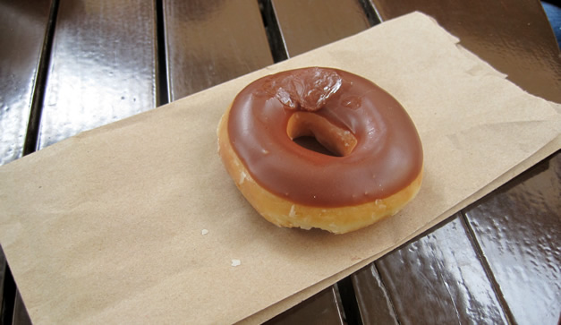 Mariana: Estas reinitas de las donas tienen una ventaja y una desventaja. Manejan el tamaño perfecto para amedrentar la culpa pero tienen una sobredosis de glaseado que las hace excesivamente dulces. Si te comes dos al hilo (cómo debo confesar es casi siempre mi caso) te dejan la sensación de la comida industrial: todo sabe encantadoramente igual. Además, la cubierta de chocolate me parece algo tímida: no es el sabor que sobresale y su tono es un poco pálido. De diez puntos, les doy un 7.5.