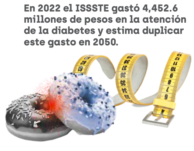 En 2022, por ejemplo, el ISSSTE gastó 4,452.6 millones de pesos en la atención de la diabetes y estima duplicar este gasto en 2050. Según su Informe Financiero y Actuarial 2023, la diabetes mellitus fue la sexta enfermedad que más gasto generó al instituto durante 2022. El año pasado, en el ISSSTE se atendieron 1,048,706 pacientes de 20 años o más por diabetes mellitus.