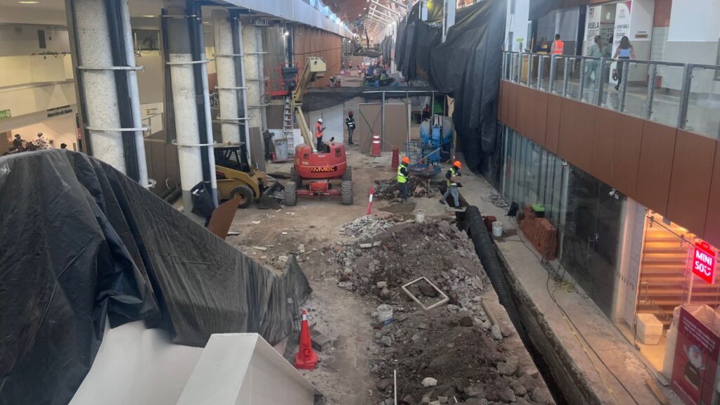 La Terminal 1, la más antigua y extensa del complejo, concentra la mayor parte de las obras de remodelación y mantenimiento, principalmente por imprevistos detectados como el “drenaje colapsado”. “Por eso el olor a baño era en toda la terminal. Los drenajes tenían tuberías de 6 pulgadas de diámetro cuando deberían haber llevado de 15”, indica.