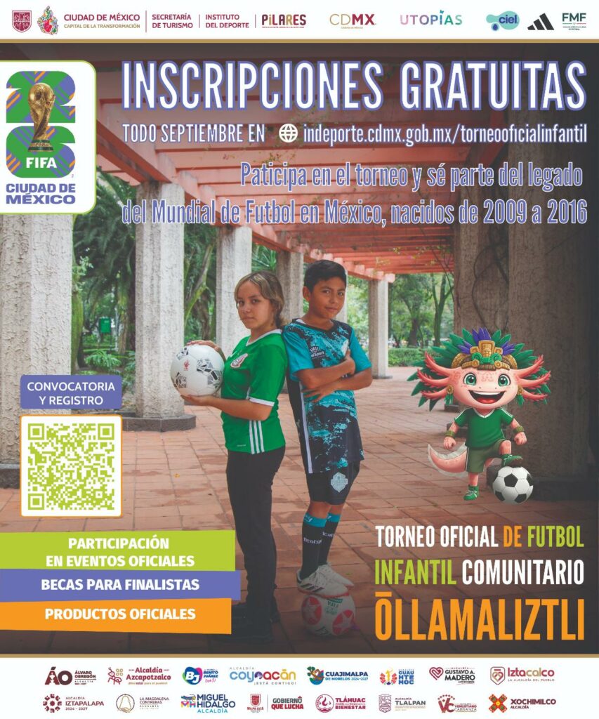 El Torneo Oficial de Fútbol Infantil Comunitario Ollamaliztli está pensado para niñas, niños y adolescentes nacidos entre 2009 y 2016, quienes podrán mostrar su talento en cuatro categorías: